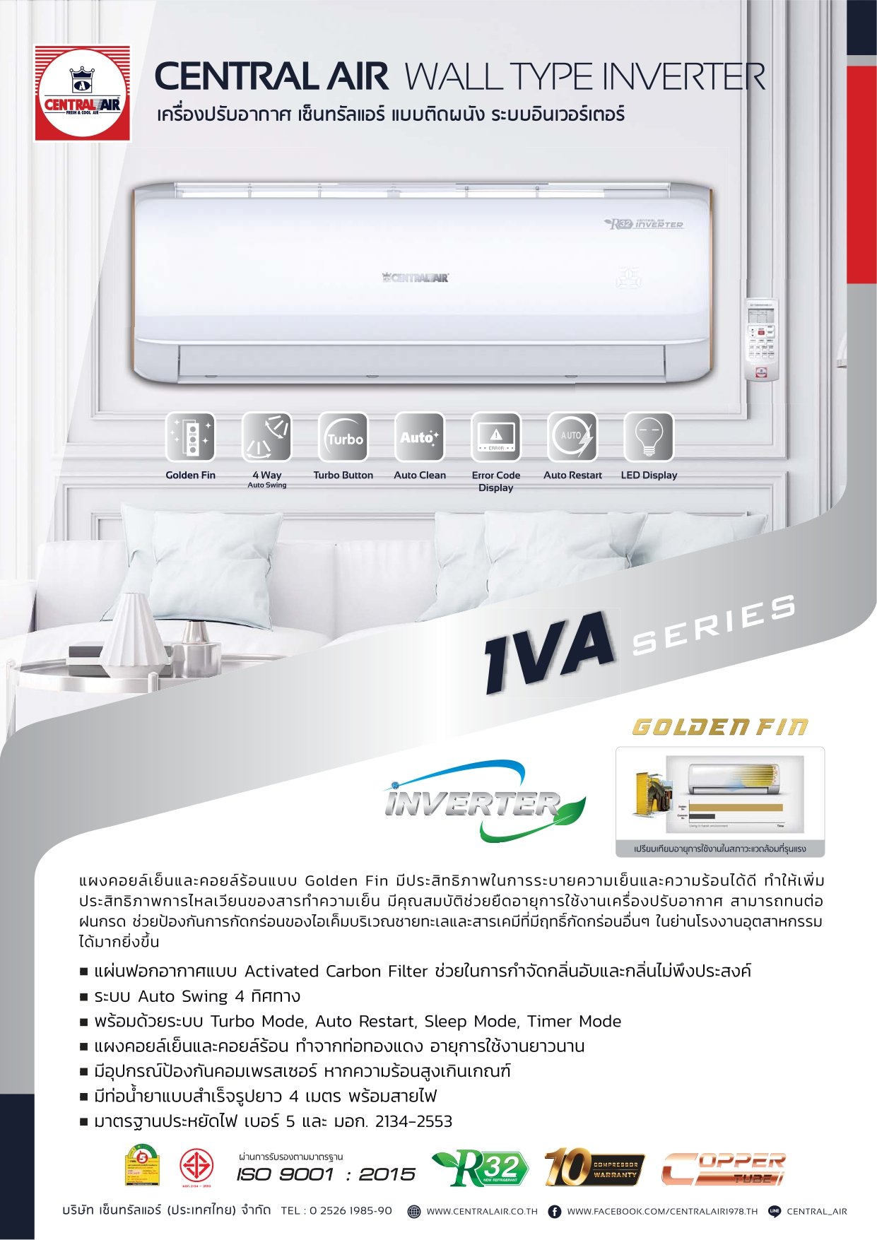 รับประกันอะไหล่ 5 ปี รับประกันคอมเพรสเซอร์ 10 ปี |
