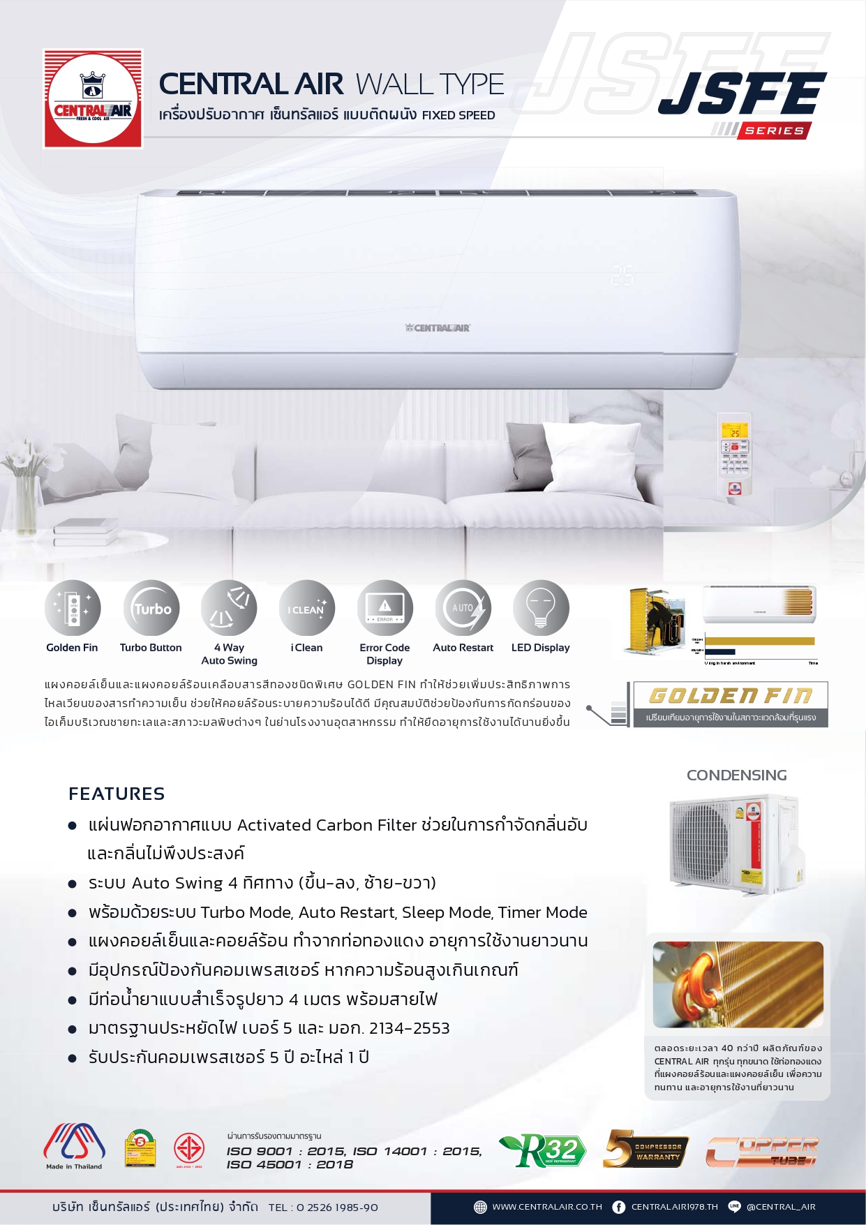 รับประกันอะไหล่ 5 ปี รับประกันคอมเพรสเซอร์ 5 ปี |